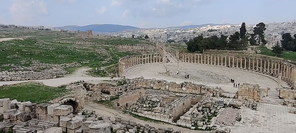 Petit-déjeuner à l’hôtel. Départ pour la visite de Jérash ou Gérasa, Site archéologique d’exception, Jérash en Jordanie attire des voyageurs pour l’incroyable état de préservation de ses vestiges. Porte d’entrée de la cité, l’arc de triomphe d’Hadrien donne le ton de la visite : ici le temps s’est arrêté en pleine Antiquité. En allant de ruines en ruines, les visiteurs découvrent l’hippodrome puis le temple de Zeus. Au sud, le théâtre antique et le forum font partie des monuments emblématiques de Jerash. Une superbe rue ornée de 200 colonnes s’étend sur 800 mètres : le cardo maximus. Après le magnifique musée archéologique, viennent les églises et temples de la cité : la cathédrale, l’église Saint-Théodore, celle du Viaduc et celle de Saint-Côme-et-Damien rappellent la présence byzantine en ces lieux. Le macellum (marché romain), le nympheum et le temple d’Artemis témoignent de l’essor des civilisations gréco-romaines dans la région. Plus au nord c’est le tétrapyle qui clôt la visite du site. Pour garder un souvenir impérissable de l’ancienne Gerasa, ne manquez pas l’incroyable vue qu’offre la colline située en face du théâtre sud.